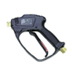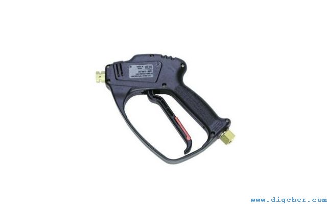 高壓水槍是高壓清洗機的重要組件之一,它主要負(fù)責(zé)清洗作業(yè)的開始與停止。高壓水槍通過高壓管路總成連接到高壓水泵的輸出端,是高壓清洗機的執(zhí)行兼控制系統(tǒng)。高壓水槍可以按排放壓力的控制閥形式做進(jìn)一步定義,主要可分為兩種,溢流型和截流型。溢流型高壓水槍的工作原理是在扣動扳機時,槍上的溢流閥關(guān)閉,壓力得以迅速增大從而形成高壓水射流,當(dāng)松開扳機時,槍上的溢流閥打開,水從溢流閥流出,從而釋放壓力。而截流型高壓水槍的工作原理則完全不同,扣動扳機時,壓力增大,當(dāng)松開扳機時,高壓水仍保持在系統(tǒng)中,通過高壓水泵上的溢流閥流出或是循環(huán)利用。